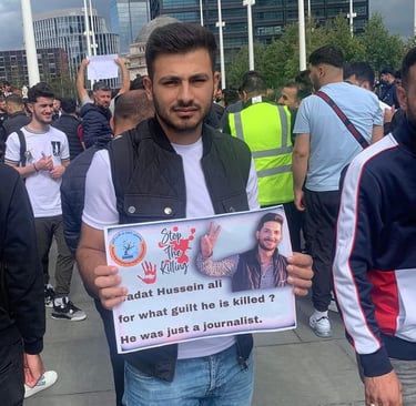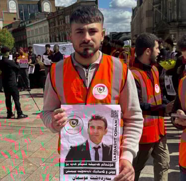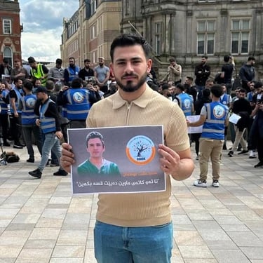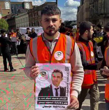 In Manchester, I joined a protest against corruption, injustice, and the arrest of activists in Kurdistan. As someone who believes in free speech and human rights, I stood proudly for those who are silenced back home.