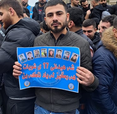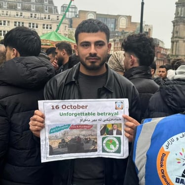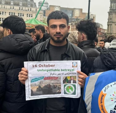 I marched peacefully through Birmingham to speak out against what happened in 2017, when Kurdish leaders handed over our land to militias. So many young people died, and I protested to hold those in power — especially the PUK and KDP — responsible.
