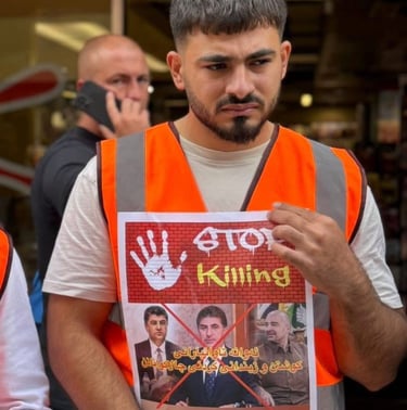 On this day, I stood in front of the BBC office in Birmingham to remember Kawa Garmyani, a journalist killed for telling the truth. I protested against the power and crimes of the PUK and KDP families who continue to silence brave voices.